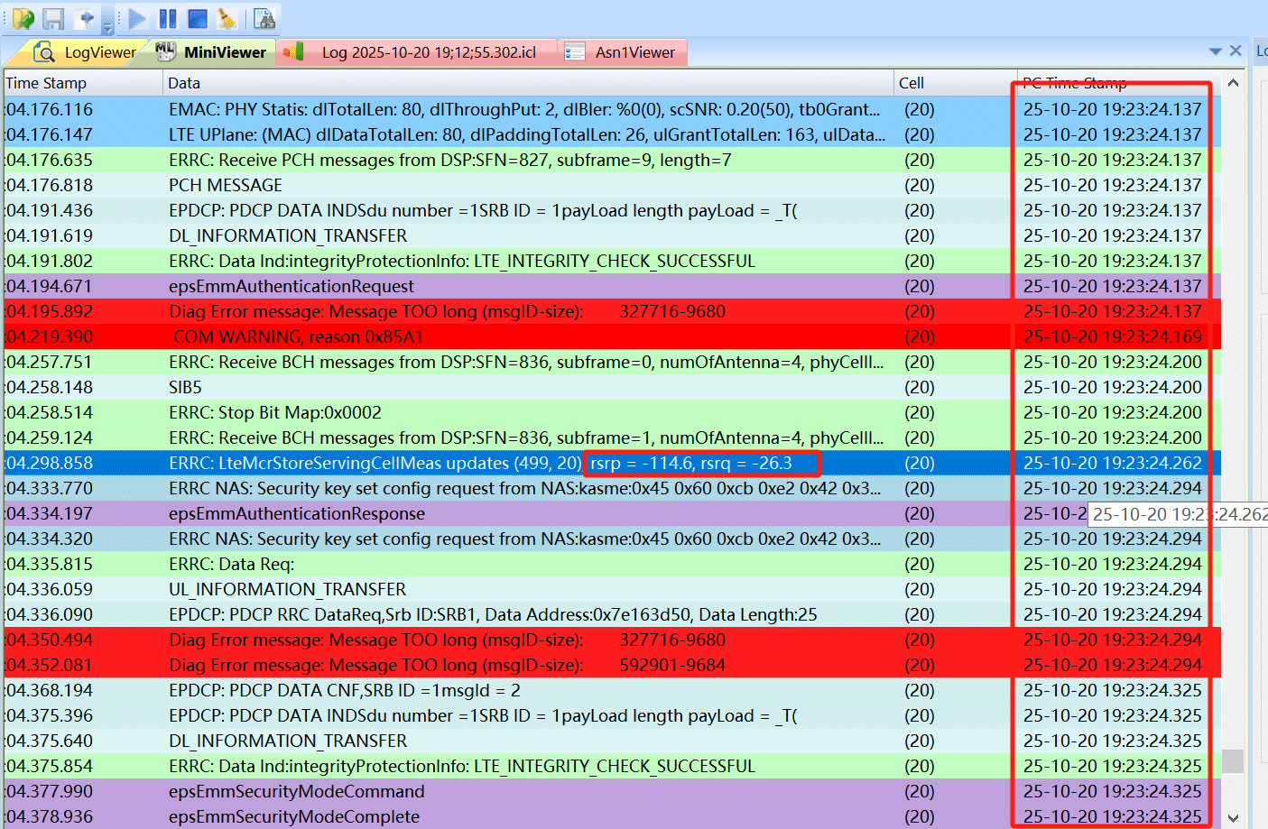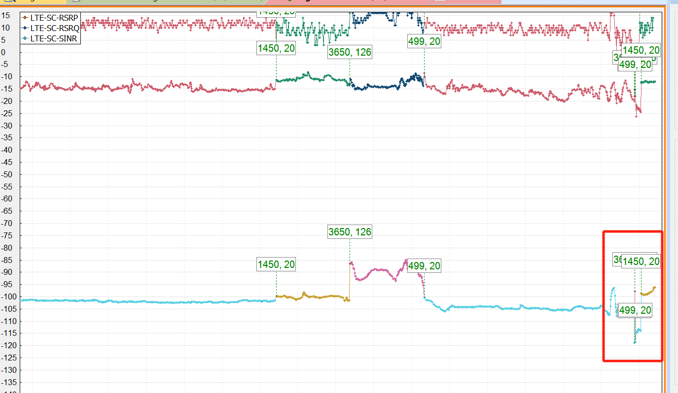 - ในช่วงเวลาที่เกิดปัญหา ค่าความแรงสัญญาณ (RSRP) ลดลงเฉียบพลันไปอยู่ที่ประมาณ -114.6 dBm